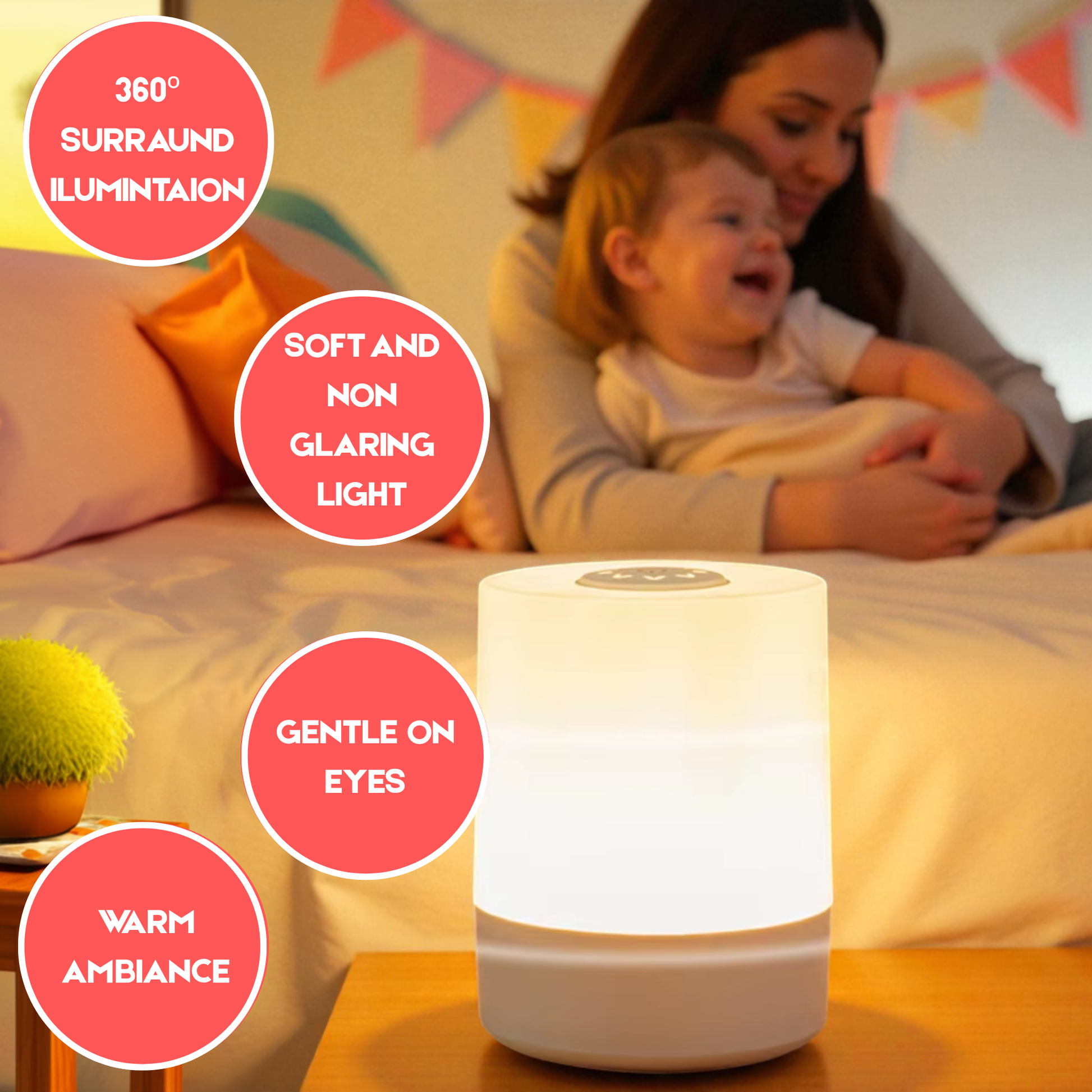 Its 360° lighting design softly fills every corner without harsh shadows. Choose between three light modes — warm, natural, or white — to match your mood and setting. Ideal for reading, nursing, relaxing, or enjoying your favorite show with a gentle, soothing glow.