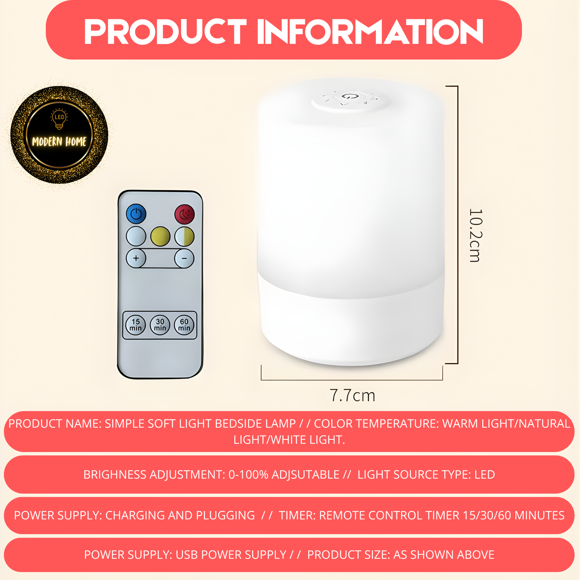 The touch control lets you switch colors or turn it on with a simple tap, while the remote control gives you complete freedom — adjust brightness, change light modes, or set the smart timer (15, 30, or 60 minutes) without moving an inch.