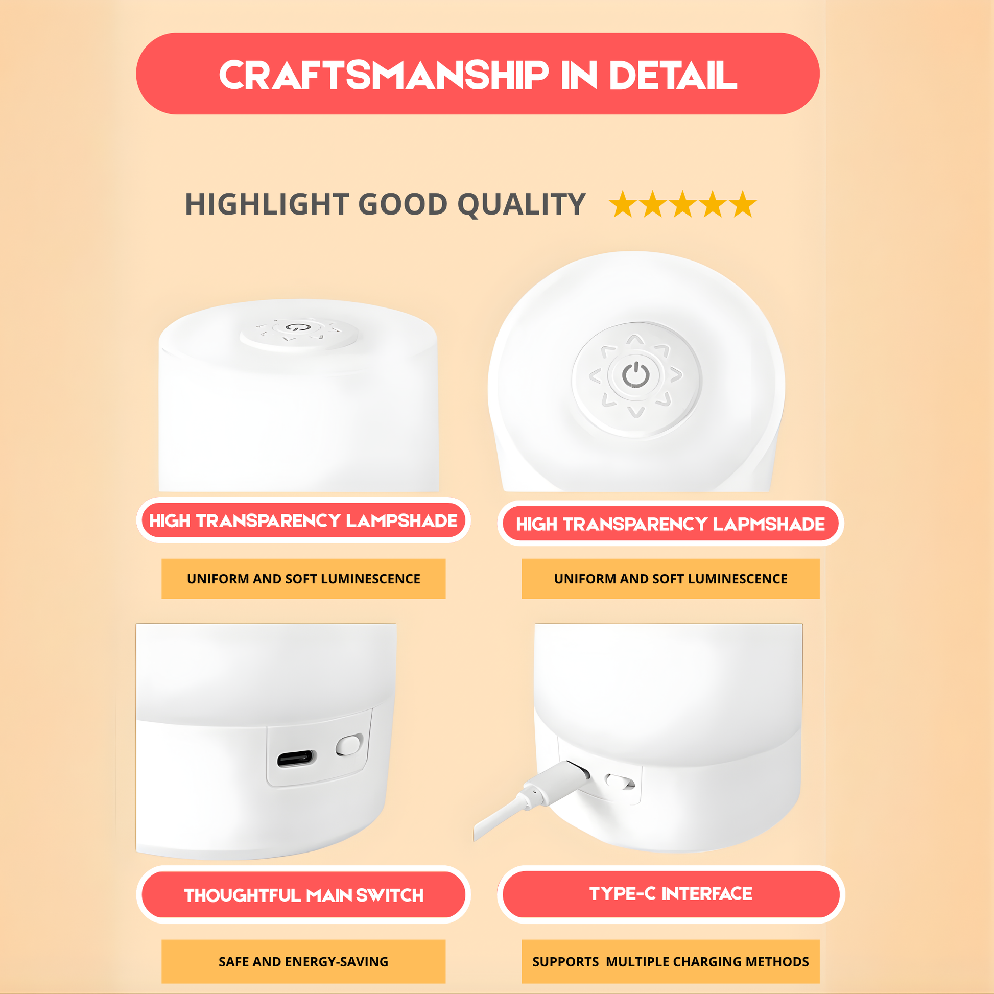 LEDGLOW is truly multifunctional: use it as a night light, reading lamp, soft light for watching TV, camping lantern, or even as a modern decorative piece. Its sleek, minimalist design blends perfectly with any home style.